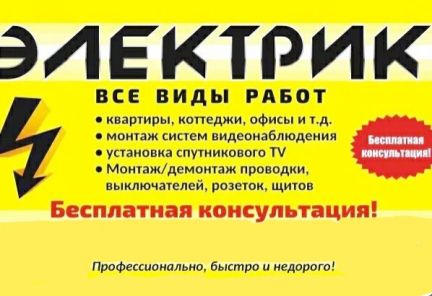 Услуги электрика, монтаж электропроводки и осветительных приборов, замена счетчиков, монтаж-демонтаж спутникового ТВ, ремонт розеток, выключателей, систем видеонаблюдения.