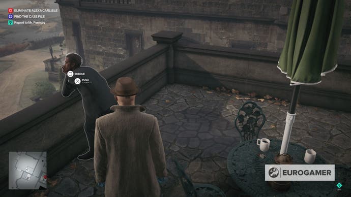 There are multiple outcomes to the Means, Motive, and Opportunity story mission, depending on how many clues you find and the conclusion you wish to reach, but each one ends the same way — by Alexa Carlisle thanking you for solving the mystery by offering the case file as a reward. With Alexa Carlisle on the balcony and alone, it’s also an easy way to eliminate her at the same time — allowing you to tick off both objectives at once.