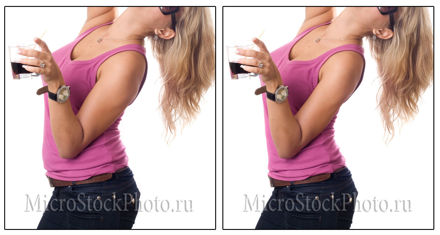 Используя фильтр «пластика», можно изменить мелкие части теле модели, например, рассмотрим коррекцию рук и устранение сопутствующих дефектов на фотографии.