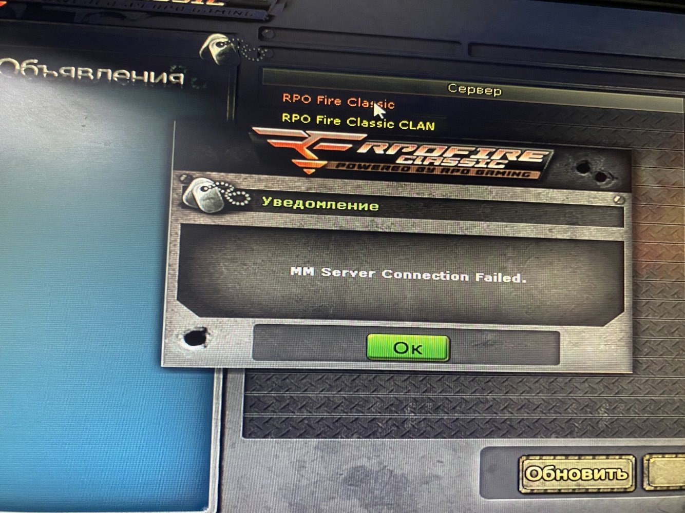 Описание ошибки: Эта ошибка появляется когда, если вы случайно попали в текстуру карты, например, под карту или за ее пределы. После появления этой ошибки вас сразу выбивает с зала.