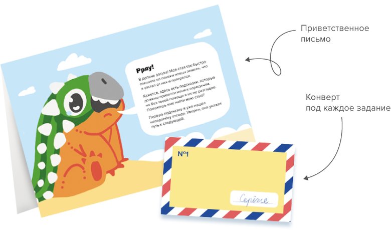 Всё это есть уже в готовом диноквесте от Академии Любознательности. Для удобства к материалам приложена схема раскладки карточек. Она поможет вам не запутаться, когда вы будете прятать записки.