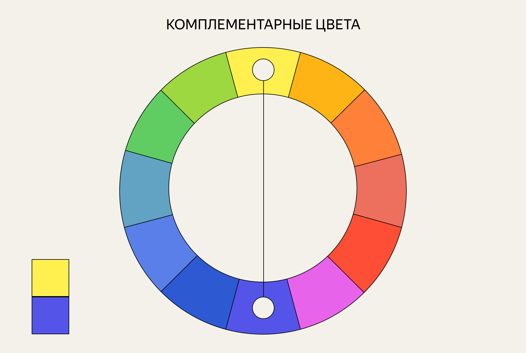 1. Комплементарное. Сочетание цветов, расположенных на противоположных сторонах круга. Хорошо подходит для расстановки акцентов. Для этого один из цветов делают основным, а другой — дополнительным, чтобы выделить отдельные объекты на изображении.