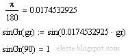 Тригонометрические функции в маткаде, по умолчанию, принимают значения в радианах: