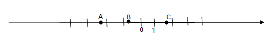 Точка C находится между точками с координатами 1 и 2, значит, ее координата
