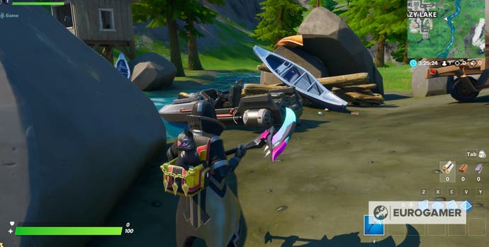 You’ll find these boats scattered along the shoreline and along the rivers on the new Fortnite map. Boats can be used as both a quick escape and a way to quickly mow down your enemies if needed.