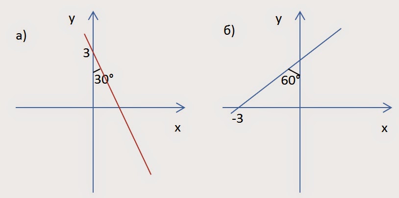 а) Рассмотрим прямоугольный треугольник, который образуют прямая с осями координат. В этом треугольнике угол равен 30 градусов и прилежащий катет равен 3. Найдем противолежащий катет: