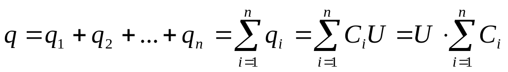 Полный электрический заряд ( (q) ) системы равен алгебраической сумме ее положительных и отрицательных зарядов ( (q_1, q_2 … q_N) ) :