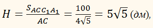 высота сечения равна высоте прямой призмы и это значение было найдено нами ранее, то есть