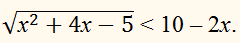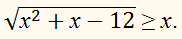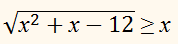 ( displaystyle sqrt{2{{x}^{2}}-6{x}-17}ge sqrt{{x}-2}text{ }Leftrightarrow text{ }left{ begin{array}{l}2{{x}^{2}}-6{x}-17ge {x}-2\{x}-2ge 0end{array} right. Leftrightarrow )