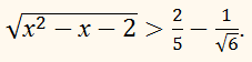Так, общая запись ( sqrt{A}>sqrt{B}) соответствует, например, уравнению ( sqrt{{{x}^{2}}-{x}-2}>sqrt{{x}-1}).