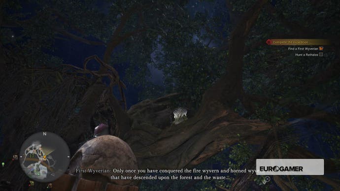 Locating a First Wyverian is harder than it seems. You may have seen one on your travels in the Ancient Forest previously — specifically in the area 10 caves in the centre of the map — but when you load in, it’s nowhere to be found. Nor does the game point you in the direction of where to go next.