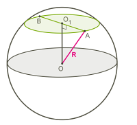 Местом сечения секущей плоскости на сфере всегда будет малая окружность, а на шаре местом сечения будет малый круг. Малая окружность и малый круг имеют свои центры, не совпадающих с центром сферы (шара). Радиус r такого круга можно найти по формуле: