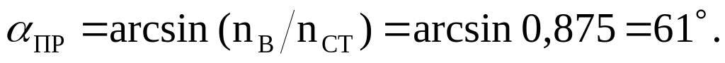 [{alpha _{пр}} = arcsin left( {frac{{1,33}}{{1,5}}} right) = 62,5^circ ]
