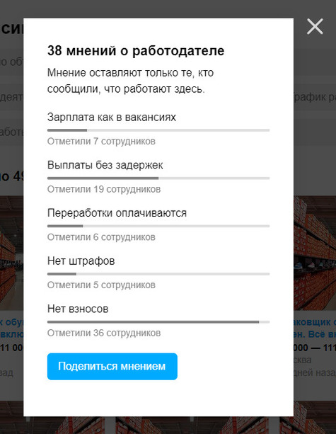 Конечно, если у работодателя условия жесткие и со множеством ограничений, вам не станут говорить о них при первой встрече. Есть ли способ узнать о компании больше, чем ее HR готов рассказать на собеседовании? Пожалуй, лучший — те же отзывы, которым мы привыкли доверять при покупке товаров или бронировании туров. Недавно возможность оставить отзыв о работодателе появилась на платформе Авито Работа. Причем сделать это могут только те, кто работал или еще работает в компании и нашли работу через Авито.