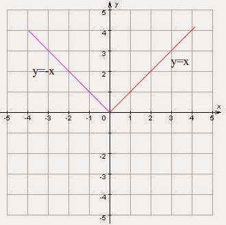 Можно рассматривать функцию y = |x| как модуль функции y = x. Т.к. модуль не может принимать отрицательные значения, то график в верхней полуплоскости останется прежним, а график в нижней полуплоскости отразится в верхнюю полуплоскость симметрично координатной оси ОХ.