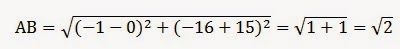 AB2 = (15/4 – 1)2 + (11/4 – 1)2 = (11/4)2 + (17/4)2 = 1/16 + (121 + 289) = 410/16.