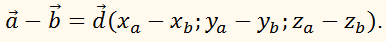 Вычесть вектор а (вычитаемое) из вектора b (уменьшаемое) значит найти новый вектор x (разность), который в сумме с вектором а даёт вектор b.