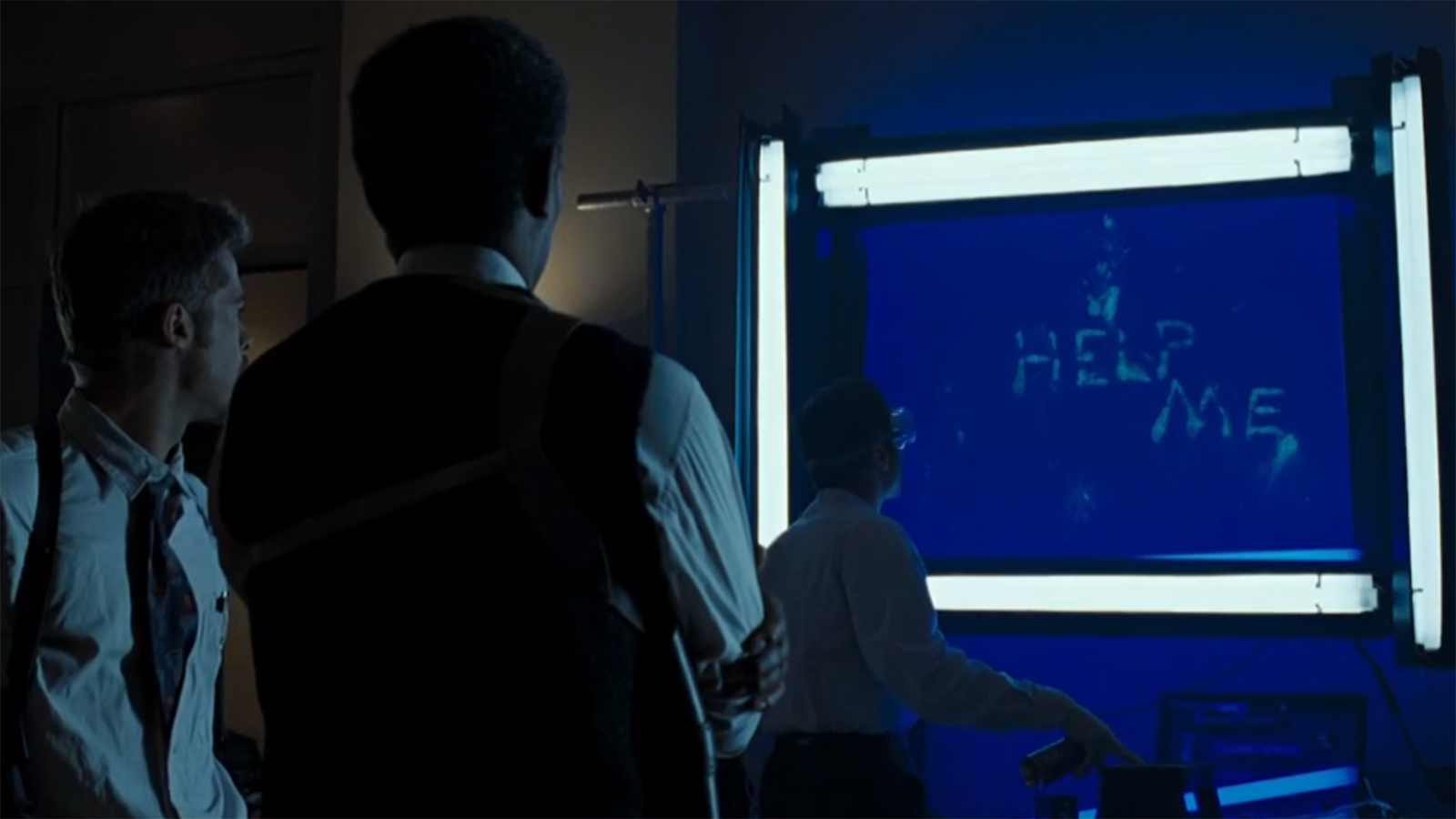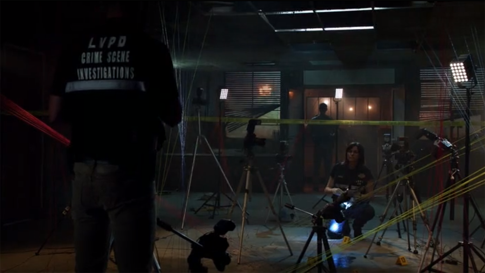Зачем использовать флуоресцентный порошок и источник ультрафиолетового света, когда до этого показали, что следы прекрасно выявились чёрным порошком, так как стена сама по себе белая? Ну, кинематографичности лишь ради.