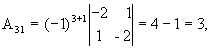 A=left(begin{array} {ccc} -1 & -2 & 1 \