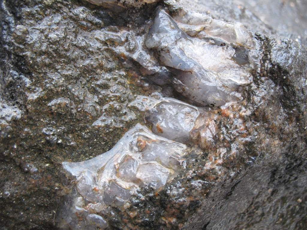 И как видим в жиле имеются кристаллы. Через лупу внутри видны кристаллы кварца изумительно чистые и правильной формы.