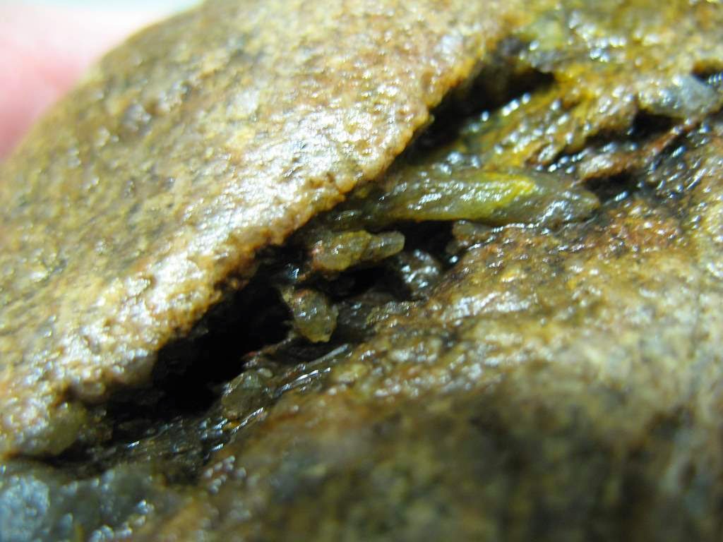 И как видим в жиле имеются кристаллы. Через лупу внутри видны кристаллы кварца изумительно чистые и правильной формы.