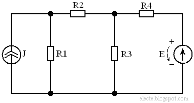 Если имеется схема с известными: сопротивлениями резисторов, ЭДС источников ЭДС и токами источников тока и надо рассчитать токи во всех ветвях, этой схемы, то можно воспользоваться каким либо методом расчёта схем, например методом уравнений Кирхгофа который является самым универсальным и подходит для расчёта любых схем. Для проверки правильности расчёта схемы: рассчитывается мощность потребляемая в схеме Pпр (мощность приёмников), рассчитывается мощность вырабатываемая в этой схеме Pист (мощность источников) после чего эти две рассчитанные мощности сравниваются, если они равны (м.б. с некоторой погрешностью (т.е. различаются но чуть чуть)) то баланс мощностей сошёлся и решение считается верным, если не равны то схема пересчитывается. Рассмотрим схему на рисунке 1: