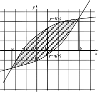 , то площадь фигуры, ограниченной графиками этих функций и отрезками прямых