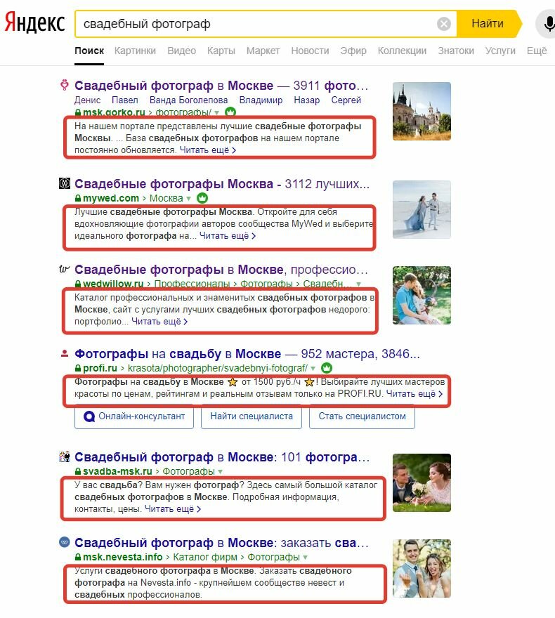 Description также является важным параметром при продвижении сайтов. Диспришн — это логическое продолжение тайтла страницы. Если в title мы кратко говорим, о чем страница, то в дескрипшине мы делаем это более подробно. Но не нужно делать дескрипшн очень похожим на заголовок, не включайте в него фразы из тайтла. Это должен быть самостоятельный текст, который не столь ориентирован на ключевые запросы, сколько обязан быть привлекательным для пользователя, так как часто дескрипшн может отдаваться в сниппет в поисковой выдачи сюда: