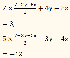 $$ Rightarrow {left{ begin{array}{c} x = 2-(-1)-2 = 1 \ y = -7cdot(-1)-5 = 2 \ z = -1 end{array} right.} Rightarrow {left{ begin{array}{c} x = 1 \ y = 2 \ z = -1 end{array} right.} $$