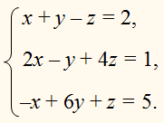 Например: $2x+5y+z = 8; -x+1, 5y+2z = 0; frac{1}{2} x-8y-5z = 7$
