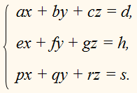 Рассмотрим систему трех линейных уравнений с тремя неизвестными: