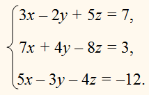 Дана система 3-х линейных уравнений с 3-мя переменными: