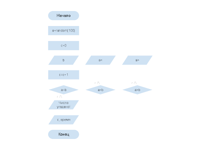 - иначе сообщать, что число угадано и прерывать выполнение цикла,