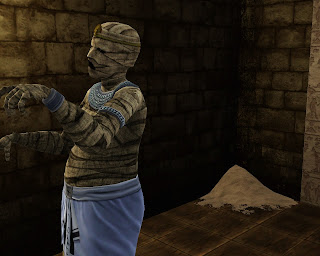 В-шестых, мумии внушают путешественникам неподдельный ужас. Зачастую даже самый храбрый сим может упасть в обморок при встрече с обитательницей подземелий. После схватки путешественники нередко пребывают в шоковом состоянии, а мумия преспокойно возвращается в свою обитель, куда можно заглянуть через какое-то время и никого там уже не обнаружить.