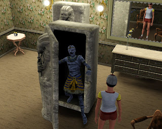 • Обычные симы не любят мумий, а трусливые персонажи и вовсе их боятся