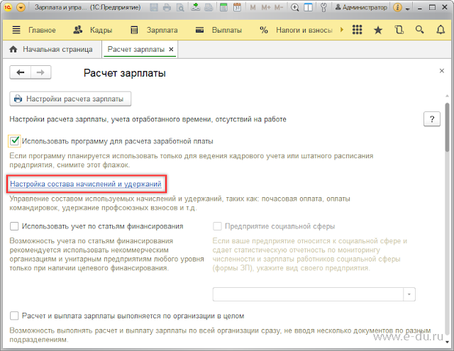 Далее нужно перейти по ссылке настройки состава начислений и удержаний: