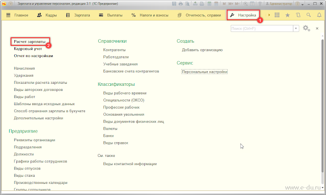 Шаг 1. Перейдите в раздел «Настройка» — «Расчет зарплаты».