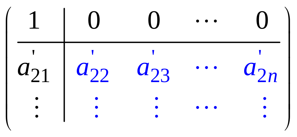 Ступенчатой матрицей называется матрица, удовлетворяющая тому свойству, что если в какой-либо из сё строк первый отличный от нуля элемент стоит на l-м месте, то во всех следующих строках на первых l местах стоят нули: