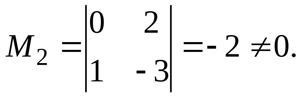 Решение. Все миноры третьего порядка данной матрицы равны нулю, так как у этих определителей третья строка нулевая. Поэтому базисным может быть только минор второго порядка, расположенный в первых двух строках матрицы. Перебирая 6 возможных миноров, отбираем отличные от нуля