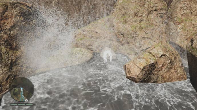 Daysha Hand 10 — From the Roaring Falls Bonfire, follow the stream east toward Swaras Outpost. The stream ends at a small pond where Mammoths like to gather. Swim to the bottom of the pond to reach the glowing collectible, and beware of bathing Mammoths.