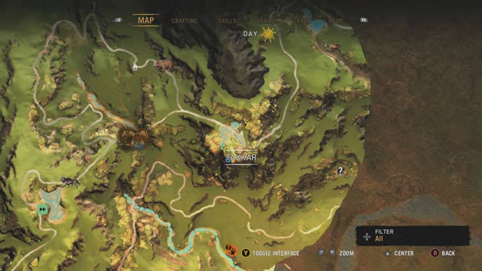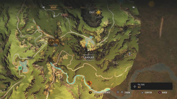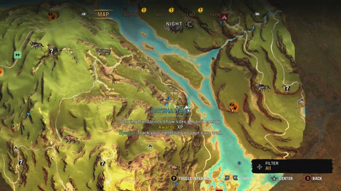 Карта Ороса из Far Cry Primal. На карте обозначены: руки Дайши, маски Изила, затерянные пещеры, тотемы, браслеты Венджа.