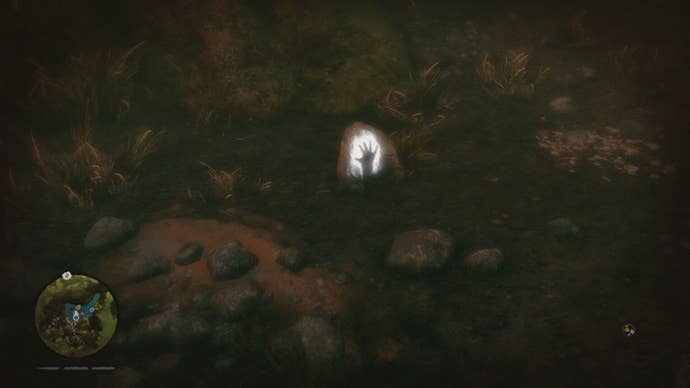 Daysha Hand 22 — This Daysha Hand is located deep inside the River Bagwi Cave. From the cave entrance, head left through the passage. Light the bonfire inside the next chamber, then locate a thorn bush along the back wall. Burn the thorns, and crouch through the narrow passage. Keep to the right to find the Daysha Hand glowing along the back wall.