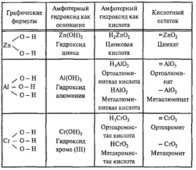 амфотерных гидроксидов в форме кислот и определите валентность кислотных