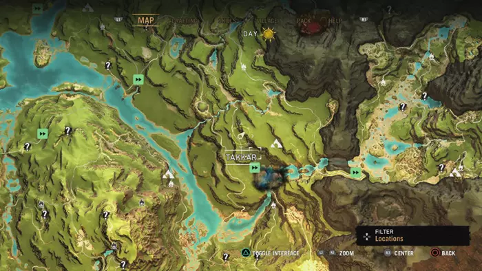 This first Hunter Cache can be found to the northeast of Kapal Outpost. Follow the nearby river to the area marked on the map below and the Hunter Cache should pop up on your World Map.