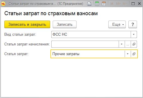 Для того, чтобы убрать взносы из строки 041 заходим в раздел «Зарплата» — Настройки зарплаты – Отражение в учете – Статьи затрат по страховым взносам. Вид статьи затрат «ФСС НС», статья затрат «прочие затраты».